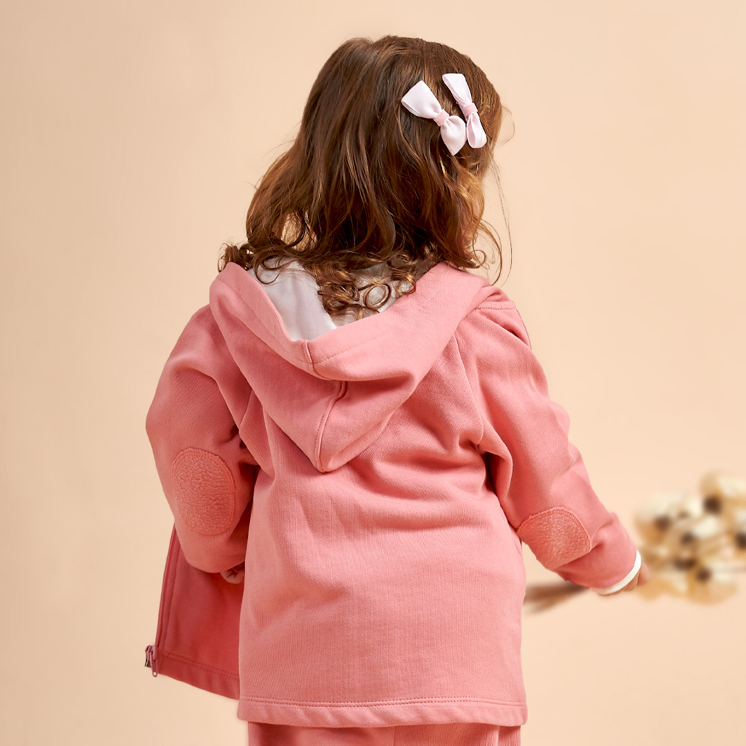 Casaca de franela manga raglan con capucha, bolsillo funcional en delantero y cierre de nylon,aplicación de coderas en las mangas.