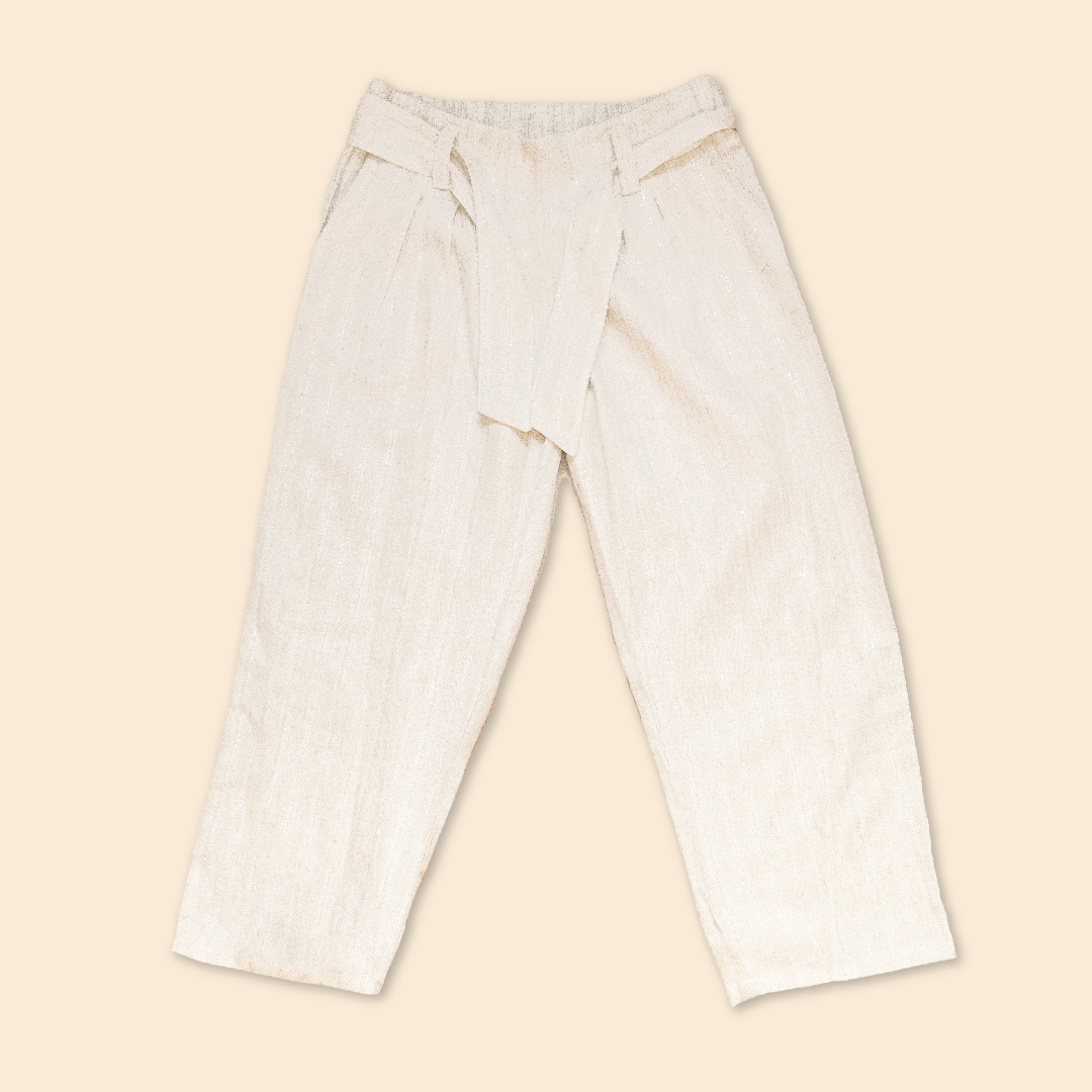 Pantalón recto con cinturón, tableros y bolsillos funcionales en delantero, cintura espalda con elástico.