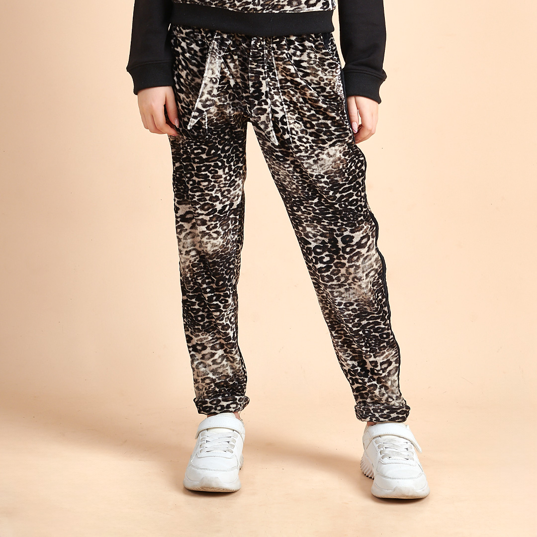 Pantalón de terciopelo, pretina elasticada con cinturón para anudar, bolsillo parche en delantero y cintas aplicadas de forma vertical en el costado de la prenda.