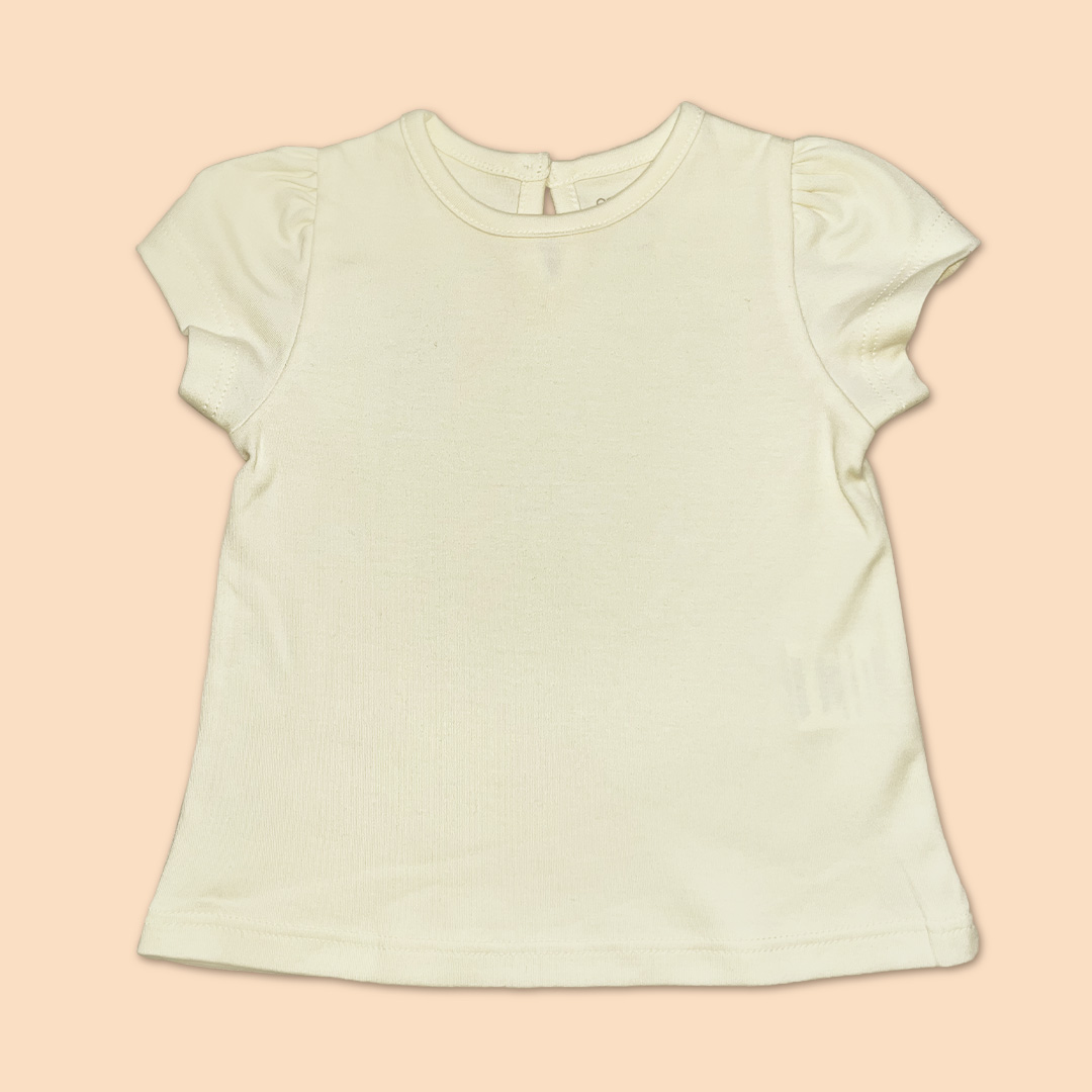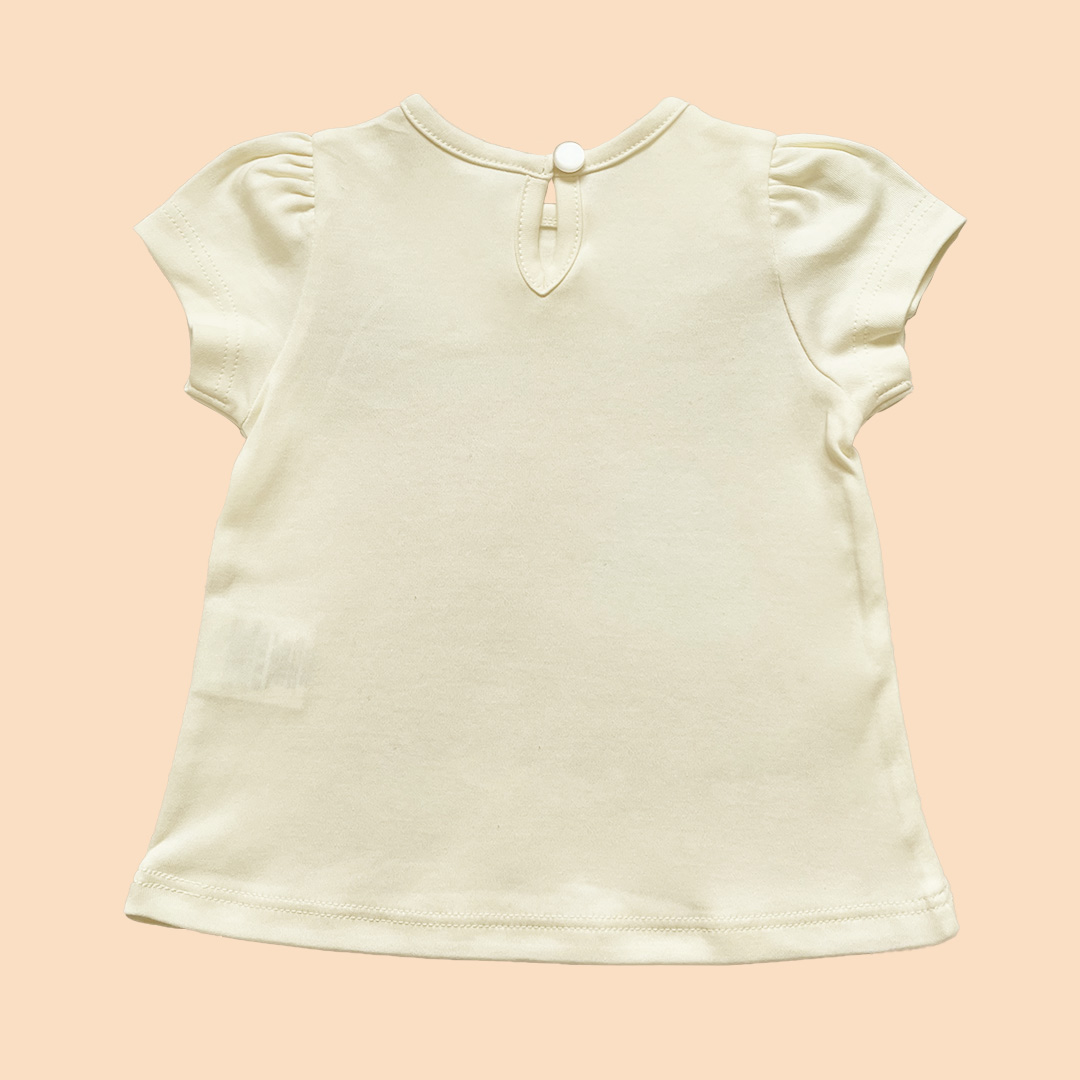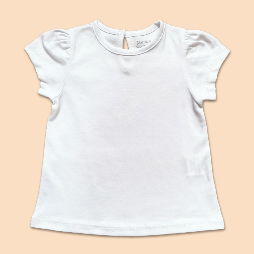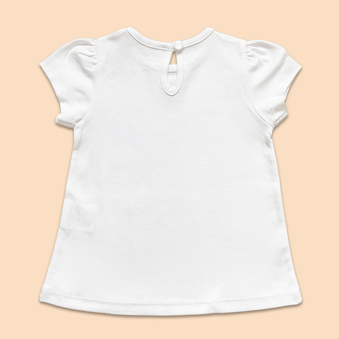 T-Shirt escote redondo, abertura en espalda con botones especiales, manga corta. Prenda hecha en 100% algodón pima.