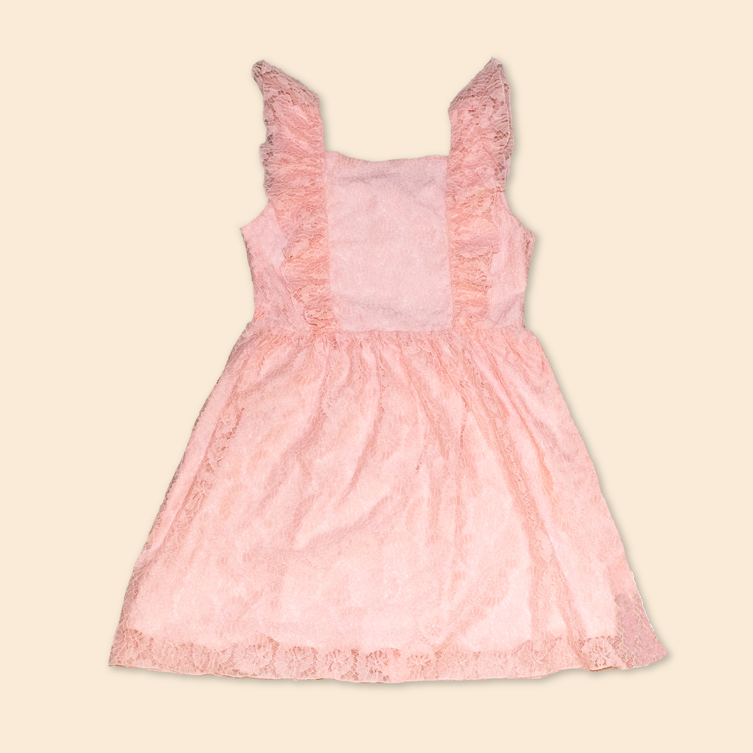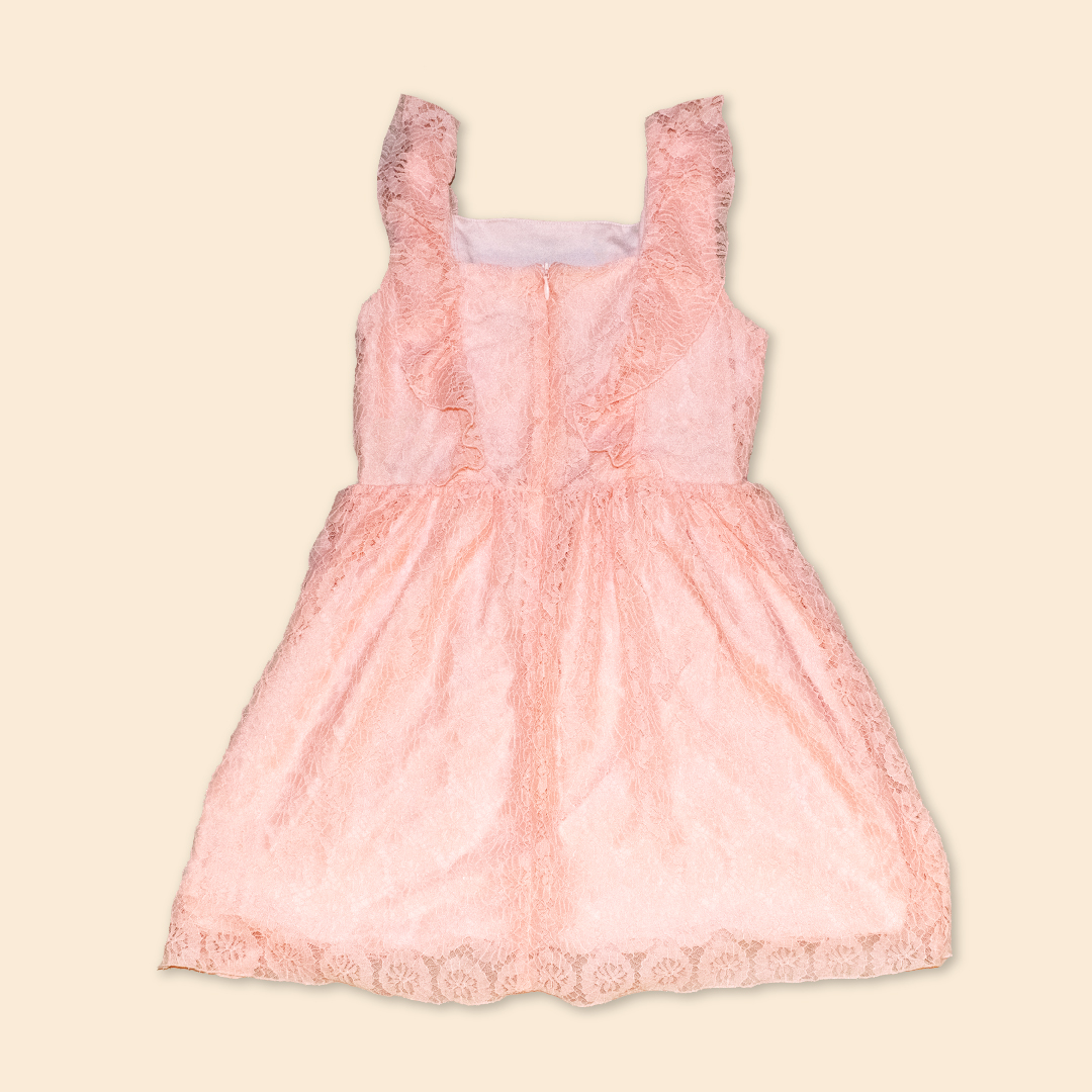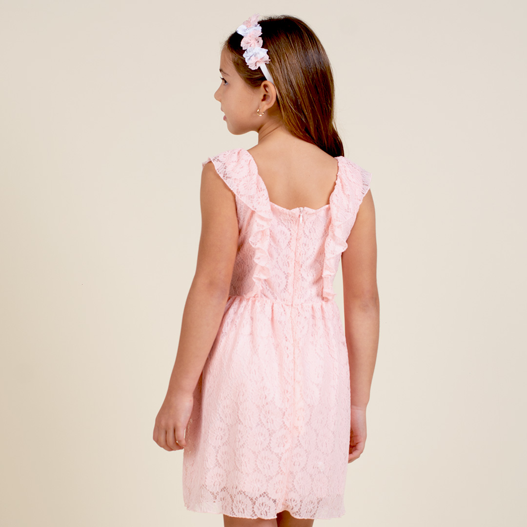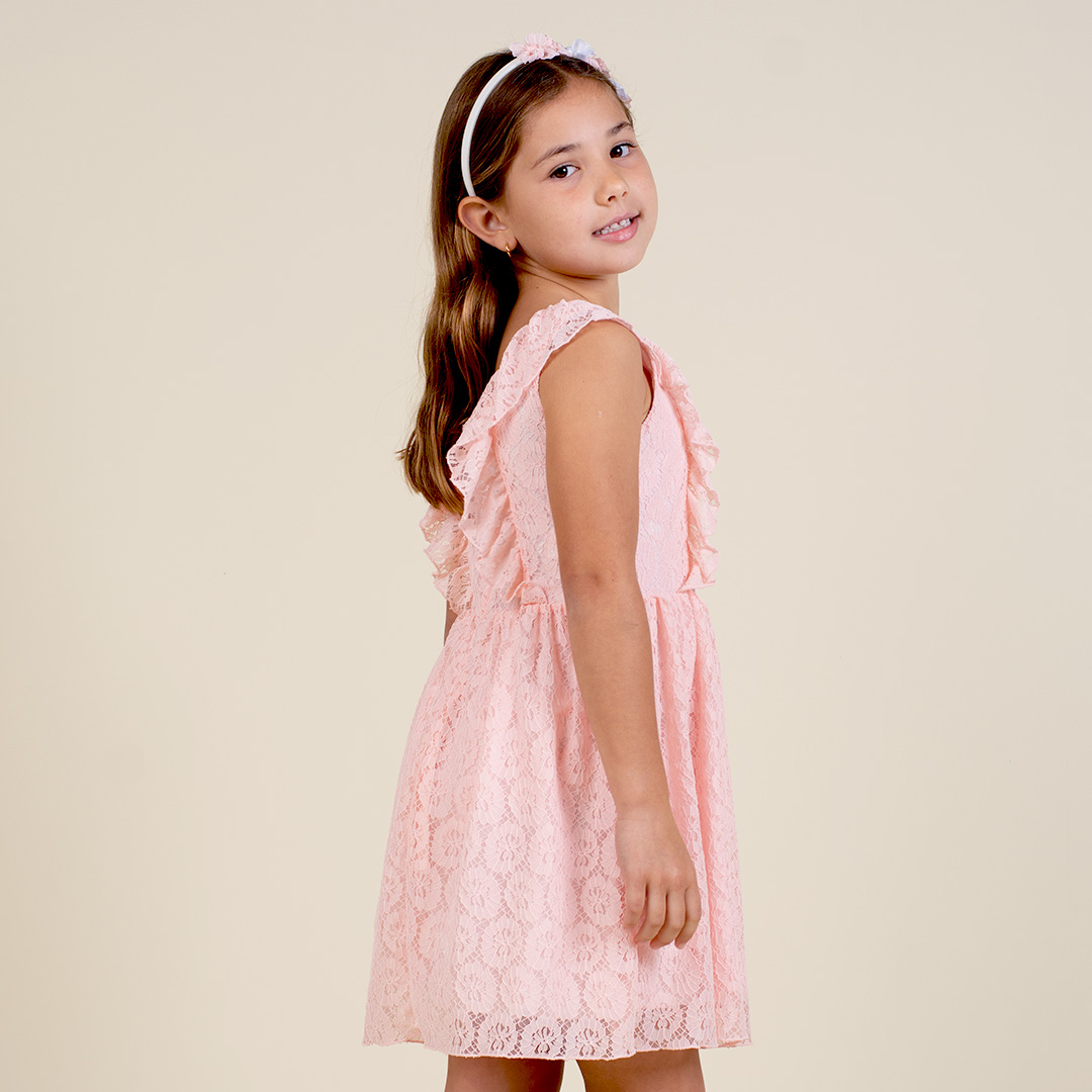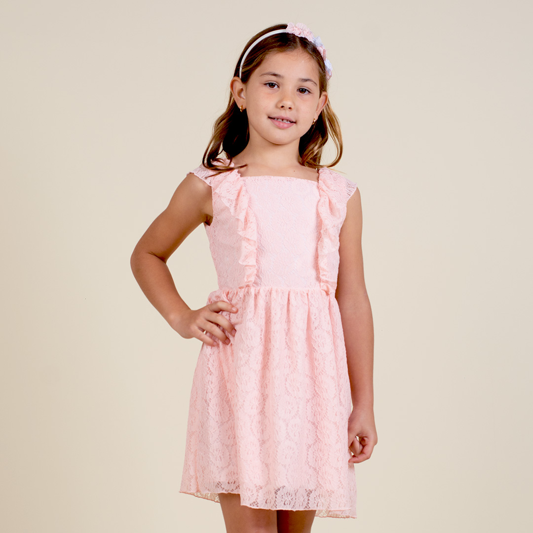 Vestido manga cero con escote cuadrado, bobo sobrepuesto, falda fruncida en contorno de cintura, cierre invisible en espalda y forro de 100% algodón peruano.